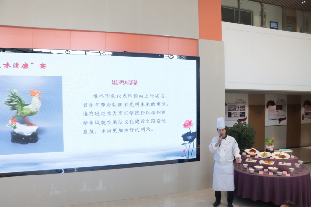 烹饪学院党总支书记李文武主持活动仪式并介绍“至味清廉”廉洁文化品牌建设方案。烹饪学院全体教师、入党积极分子参加活动。