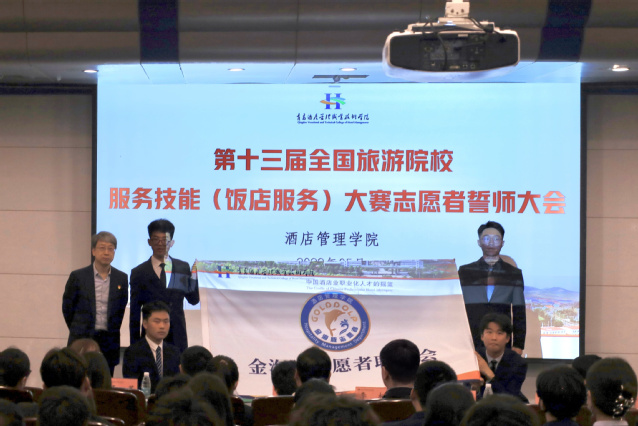 本网讯(酒店管理学院 秦余汶)5月6日,酒店管理学院在学术报告厅召开第十三届全国旅游院校服务技能(饭店服务)大赛“金海豚”志愿者誓师大会。副校长宫恩龙参加会议。