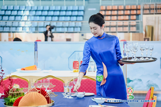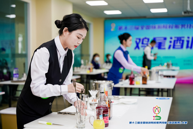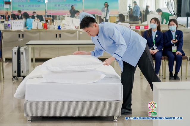 本网讯(党委宣传统战部)5月11日,第十三届全国旅游院校服务技能(饭店服务)大赛在学校学术报告厅正式开幕。按照大赛日程安排,餐厅服务、客房服务、鸡尾酒调制、英语水平测试等各项比赛目前正在火热进行中,来自全国各地的选手精神饱满、意气风发,在赛场赛出了个人风采和技能水平,他们的专业表现为我们奉上了一场精彩纷呈的视觉盛宴。