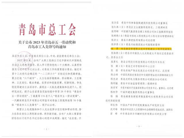 本网讯(工会 吴春雷)近日,青岛市总工会下发《关于公布2023年青岛市五一劳动奖和青岛市工人先锋号的通知》《关于公布职业技能竞赛和“一匠五创”活动青岛市五一劳动奖和青岛市工人先锋号名单的通知》,AC米兰酒店工程学院张勇、宋强两名教师荣获“青岛市五一劳动奖章”。
