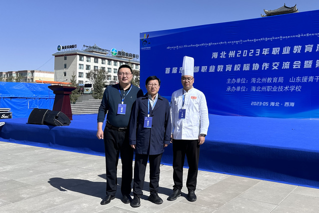 在首届东西部职业教育校际协作交流会暨第20期鲁青教育论坛中,副校长张宗国、教务处处长于进亮到现场交流分享办学经验。会议同期举办了职业教育帮扶成果展示活动,学校援青教师殷东指导学生以“黄河缘·山海情”为主题,制作宴席菜品参与技能帮扶模块展览,山东省人民政府副秘书长、省第五批援青干部领队荣红智莅临展台指导,对学校教育援青工作予以肯定。