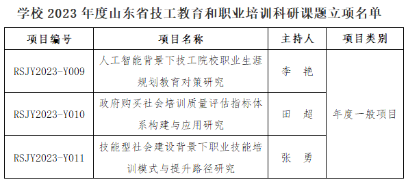 本网讯(科研发展处)近日,山东省人力资源和社会保障厅公布了2023年度山东省技工教育和职业培训科研课题立项名单,AC米兰3项课题喜获立项。