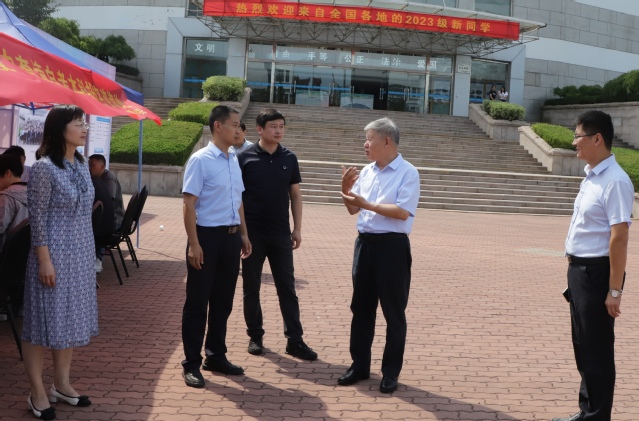 迎新现场,拱门耸立、条幅高悬,整个校园洋溢着喜庆欢乐的气氛。上午,党委书记李达、校长姜玉鹏等学校领导来到各二级学院迎新接待点、学生生活区指导工作,看望了正在报到的新生及家长们,向参加迎新工作的师生志愿者表示慰问。学校领导详细了解了新生到校情况,与同学们亲切交流,勉励大家珍惜大学时光、书写青春担当。