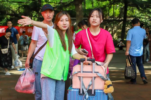 “请问,在哪里办理报到手续?”“学长,宿舍往哪边走?”面对新生和家长们初入校园时遇到的各类问题,志愿者们不厌其烦地一一解答,提供个性化、多样化的“一条龙”服务。校外接站、路边引领、答疑解惑、搬运行李……志愿者们热情的服务、明媚的笑容洋溢在新生入学的全部流程。“去年报到时,我遇见了热心的志愿者们,今天,我也要把这份校园温暖传递给学弟学妹们。”作为迎新工作的主力军,志愿者们用汗水和微笑传递着正能量,为新生们在炎炎夏日带来了别样的舒心和清凉。