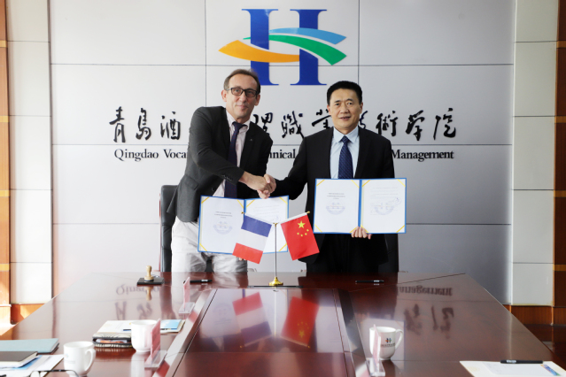 姜玉鹏代表学校与法国萨维纳国际高等酒店管理学院签署合作备忘录。