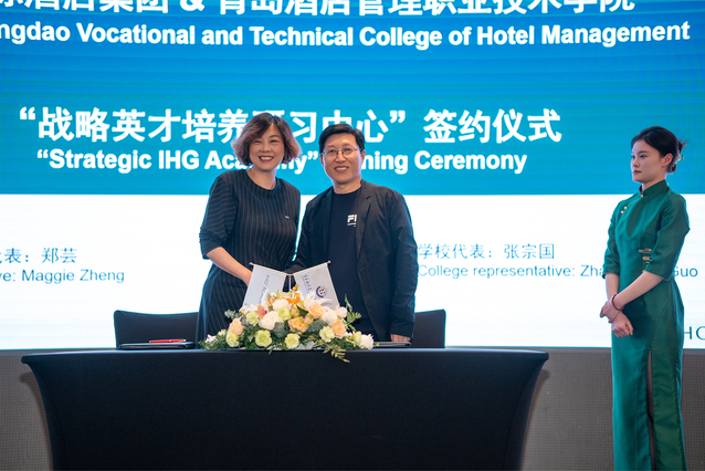 11月6日下午,酒店管理学院2023级洲际英才班开班仪式在青岛金水皇冠假日酒店举行。学校副校长张宗国在致辞中表示,产教融合是职业教育的重要支撑,学校持续把教学与产业密切结合,向着建设国内一流、国际知名的酒店业全科型职业教育品牌奋勇前进,打造中国酒店业职业化人才的摇篮。洲际酒店集团大中华区酒店开业及发展事业部、雇主品牌及早期职业生涯管理首席人力资源总监郑芸回顾了与学校十年来的精诚合作,期待双方加强优势互补、工学结合,不断提高合作层次、扩大合作范围、挖掘合作潜力,把合作推向新高度。