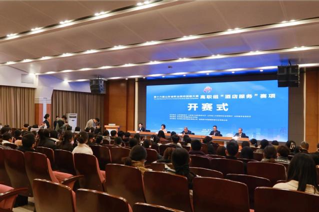 本网讯(酒店管理学院 王磊磊)12月5日下午,由山东省教育厅等四部门联合主办的第十六届山东省职业院校技能大赛高职组“酒店服务”赛项在学校开赛。学校副校长张宗国主持开赛式。