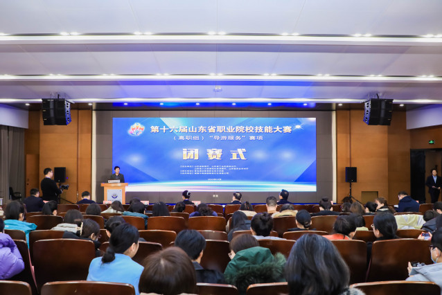 在大赛点评环节,赛项专家组对本次比赛的赛前准备、赛中组织等工作给予充分肯定,对参赛选手严谨认真的态度、扎实的职业技能和职业素养给予了高度赞赏。各组裁判组长、裁判长对各组选手的表现进行了专业点评,并提出了改进建议,为下一步山东省旅游大类导游人才培养指明了方向。随后,专家工作组组长黄安定公布了比赛成绩。