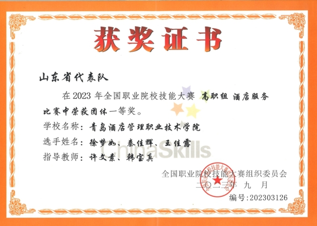 学校荣获全国职业院校技能大赛高职组酒店服务、酒水服务、导游服务赛项3个一等奖,烹饪赛项1个二等奖;获全省职业院校技能大赛一等奖6项、二等奖4项、三等奖7项,一等奖获奖数量较去年增长100%;获全国职业技能大赛优胜奖3项;获全省职业技能大赛金奖3项、银奖2项、铜奖1项;获“技能兴鲁”职业技能大赛一等奖18项、二等奖8项、三等奖7项,参赛成绩再创新高。
