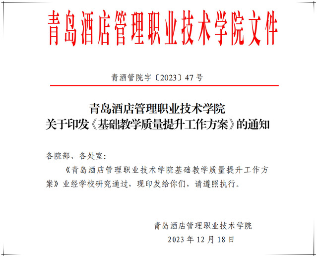 启动基础教学质量提升工程,扎实开展基础教学工作调研,印发《基础教学质量提升工作方案》,明确工作配档,夯实学校基础教学底座。严把质量关,扎实推进课程体制培优综合改革,50门课程顺利通过首批验收,63门课程立项第二批改革课程,逐步探索形成具有学校特色的课程改革范式。聚焦高质量发展,印发学校《关于专业数字化升级的指导意见》,分维度指导专业分类稳步推进数字化升级。