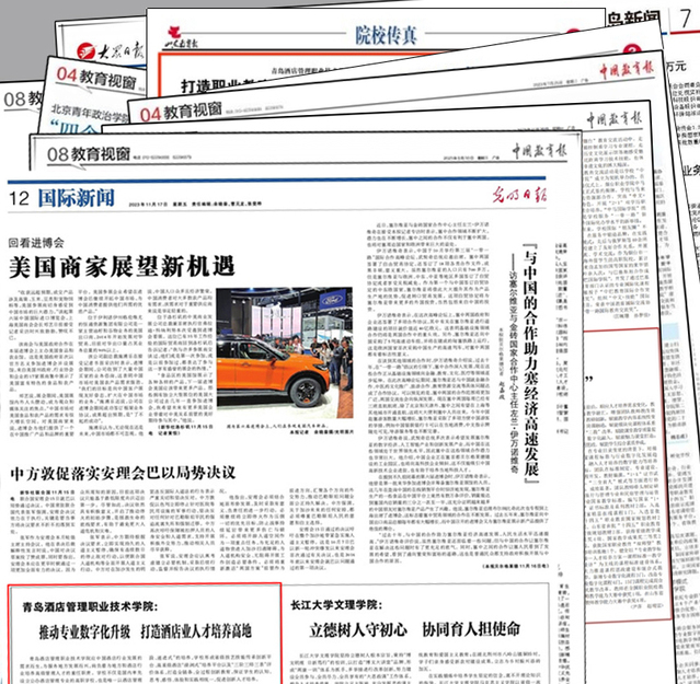 《光明日报》以学校推动专业数字化升级、打造酒店业人才培养高地为题,报道人才培养的经验做法。《中国教育报》4次专题报道,新华社、新华网、《中国旅游报》、《大众日报》、山东教育厅等省级以上媒体和平台报道120余次。获评“山东最佳品牌影响力高校”“山东最具影响力教育政务融媒体”“山东教育发布APP教育号综合实力二十强”“全国职业院校官微百强”等称号。