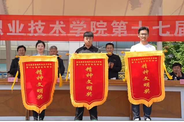 学校副校长宫恩龙主持运动会开闭幕式。在29日举行的闭幕式上,运动会总裁判长夏飞宣布了竞赛团体总分成绩,工商管理学院、酒店管理学院、烹饪学院获得学生组团体总分前三名,马院基础部、酒店管理学院、工商管理学院获得教工组团体总分前三名;副校长张宗国宣布了获得精神文明奖的单位名单,会计学院、信息工程技术学院、酒店管理学院获得学生组精神文明奖,酒店管理学院、信息工程技术学院、艺术学院获得教工组精神文明奖。学校领导向获得运动会竞赛团体总分前三名和精神文明奖的单位颁发了锦旗。