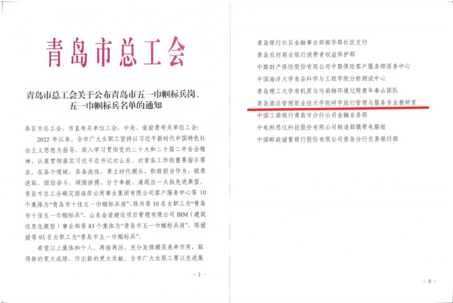 学校2名教师、1个集体分别荣获“青岛市五一劳动奖章”“青岛市五一巾帼标兵岗”荣誉称号