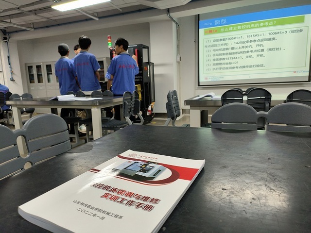 一边是课本供学习,一边就是真实的生产设备供实训。这在山东省的所有职教学院里,极为普遍,也是常态。