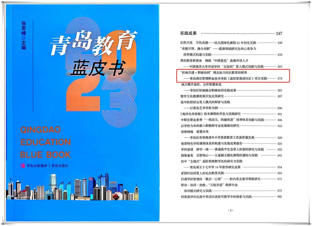 本网讯(继续教育学院 教务处 科研发展处)近日,《青岛教育蓝皮书(2023年)》出版发行,AC米兰继续教育学院社区教育实践成果《“校地共建+职继协同”理念助力社区教育结硕果——AC米兰中文官方网站“高校资源进社区”项目实践》入选。