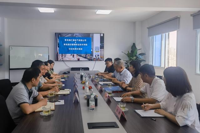 座谈中,李达介绍了学校总体情况、专业发展、生源特点和毕业生就业趋势,希望双方基于教学资源建设、教材开发、专业技能培训等现有合作成果,不断深化产教融合,构建协同育人体系,共同推进人才培养质量提升,为地方经济及行业发展培养高素质、技能型、创新型人才。海汇德公司董事长孙健介绍了公司发展现状和用人需求,展示了海汇德在新能源充电领域的核心技术应用以及新能源充电行业的发展态势,期待与学校共同培养更多高质量人才。随后,双方就如何加强校企合作、共建产业学院、提供就业岗位等方面进行了深入探讨。