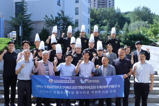 韩西清代表学校对彗田大学师生的到来表示欢迎,介绍了学校办学特色和发展情况,回顾了学校与韩国彗田大学交流合作的历程。他表示,两校友好交流已达16年,在学生互派、教师互访、专业共建等方面开展了广泛深入合作,取得了丰硕成果;希望同学们能够尽快适应新环境,学习中餐烹饪技能,体悟中国烹饪文化。张宗国代表学校向来校学习的13名学生颁发校徽和中餐实训指导书。