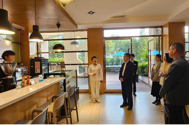 活动中,来访人员先后参观了学校数字酒店实训中心、旅游大数据中心、烹饪学院实训中心等实训基地。