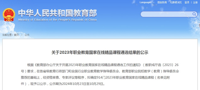 本网讯(教务处 宋玉莉)近日,教育部公示了2023年职业教育国家在线精品课程遴选结果,经资格审查、专家评议等程序,拟确定914门课程入选2023年职业教育国家在线精品课程,AC米兰3门课程入选,入选数量位列省内前列。
