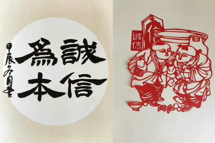 12月17日-25日,酒店管理学院开展“诚信教育文艺作品征集活动”。活动期间,共收集到学生作品四十余份,包括创意手工、剪纸技艺、书法绘画,视频创作等,每一份作品都展现出学生对诚信意义的巧思与才华。