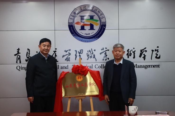 李达、倪道余共同为“山东烹饪工匠学院”揭牌,并参观了烹饪实训大楼。