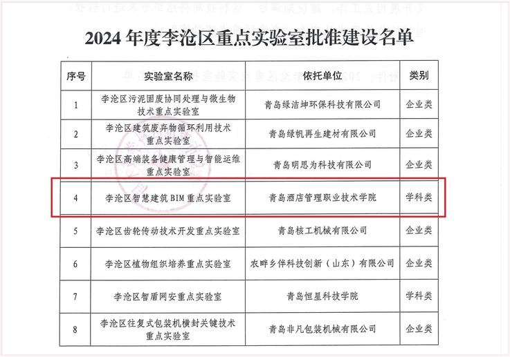 本网讯(科研发展处 酒店工程学院)近日,李沧区科学技术局公布了2024年度李沧区重点实验室立项建设名单,AC米兰获批建设李沧区智慧建筑BIM重点实验室。