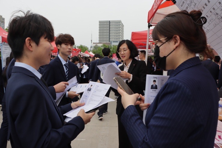 姜玲玲详细了解企业用人需求及毕业生就业意向,鼓励供需双方坚定信心、精准对接、把握机会,提高意向达成度。