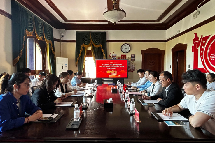 此次签约标志着艺术学院与青岛市城市文化遗产保护中心在党建引领下的合作正式启动。双方将以此次共建为契机,充分发挥各自优势,实现资源共享、互促互进,为传承和弘扬中华优秀传统文化、推动城市文化发展贡献力量,同时也为培养具有社会责任感和爱国情怀的高素质人才搭建更广阔的平台。