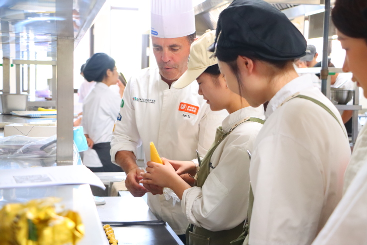 本网讯(烹饪学院 国际交流与合作处)近日,学校开展法国品阁高等厨艺学院烹饪课堂交流活动,特邀法国品阁高等厨艺学院米其林星级大师让-米歇尔·马凯教授到校进行中法厨艺课堂授课,并举行教学成果汇报展示会。