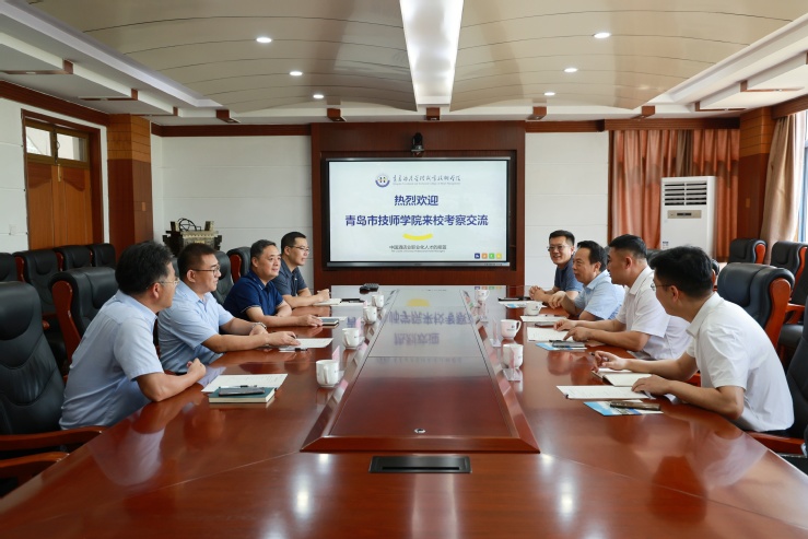 刁洪斌代表学校对青岛市技师学院一行的到来表示热烈欢迎,并简要介绍了学校发展历史、办学特色、人才队伍等方面的基本情况。刁洪斌表示,双方在办学发展历程中都取得了突出成绩,形成了自己的发展特色,希望双方继续深化合作交流,互相借鉴经验做法,携手共进,共同谱写两校高质量发展新篇章。