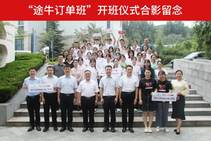 仪式上,刁洪斌、辛守东为途牛订单班揭牌。姜玉鹏为辛守东颁发学校特聘教授聘书并对双方的合作以及订单班全体学生提出期望与要求,他表示,途牛是在线旅游和文旅直播行业头部企业,双方深度合作能够充分实现联合共育、科技共赢、成果共享。