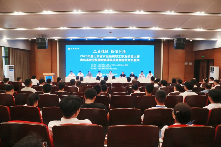 本网讯(酒店工程学院)8月19日,2025年度山东省水运系统职工职业技能大赛水上工程建筑信息模型(BIM)技术员赛项与青岛市职业技能竞赛建筑信息模型(BIM)技术员赛项在AC米兰举行。青岛市人力资源和社会保障局二级巡视员黄同华,山东省海员工会主席吴玉川,中建港航局党委副书记、董事、工会主席郭导,青岛市人力资源和社会保障局职业能力建设处处长杨志强,学校党委副书记韩西清等参加启动仪式。