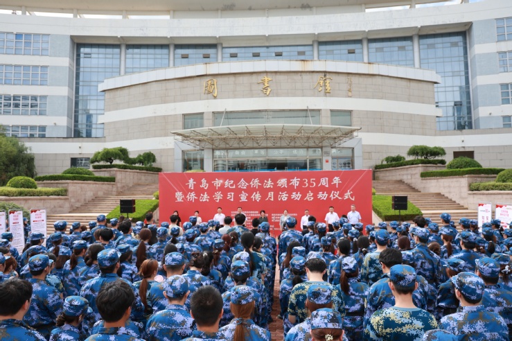 启动仪式由李沧区委统战部副部长、区台办主任、港澳办主任王建美主持。学校党委书记刁洪斌致欢迎辞,介绍学校发展历程、专业特色优势、侨务工作基础及服务侨界的举措。青岛市委统战部副部长、市侨办主任张辉强调,要以侨法为纲,聚焦侨界群众急难愁盼,在政策落实、权益维护、服务优化上持续发力,通过健全“线上+线下”服务网络、深化部门联动协作,切实把侨法优势转化为为侨服务的实效,让侨胞在青岛安心发展、舒心生活。李沧区委统战部分管日常工作的副部长王玉萍表示,李沧区将以此次活动为契机,不断深化“一法两条例”宣传普及、加快健全依法护侨长效机制,打造侨法宣传“李沧样板”。最后,青岛市侨联党组副书记、主席牛旭东宣布青岛市纪念侨法颁布35周年暨侨法学习宣传月活动正式启动,侨法学习宣传月活动就此拉开序幕。