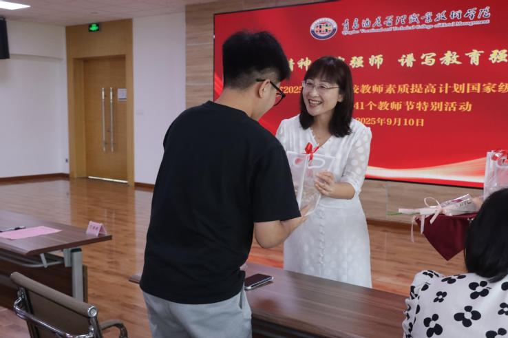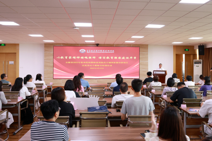 本网讯(继续教育学院 工商管理学院)9月10日,安徽省2025年职业院校教师素质提高计划国培项目教师节庆祝活动在行政楼四楼会议室举办,高职现代物流管理/跨境电子商务教师企业实践项目和中职电子商务与物流产业教师企业实践项目的63位学员老师参加。学校党委书记刁洪斌,副校长、工会主席姜玲玲出席活动。